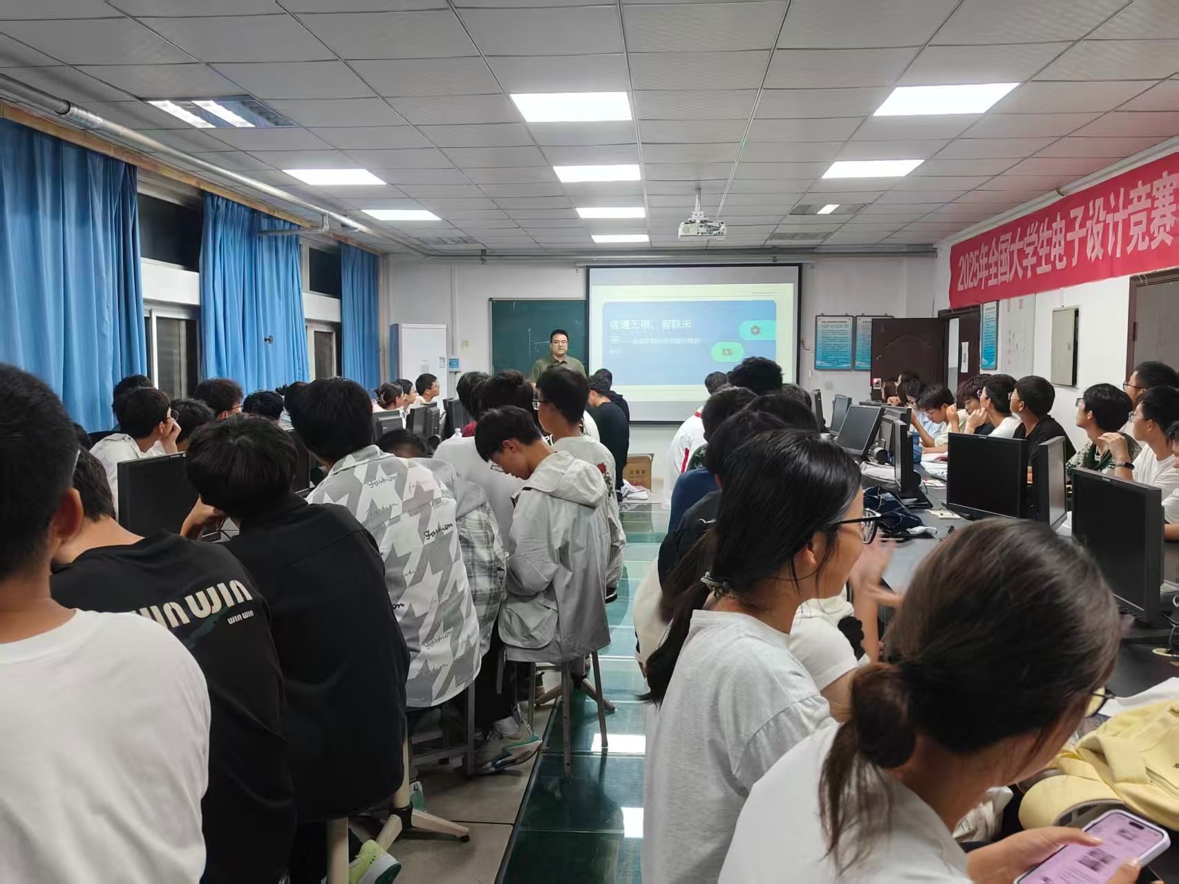 为给 2025 级新生搭建成长阶梯,大会同步启动“高年级带新生”培训计划——定期开展电路设计、嵌入式开发、软件编程等技能培训,以“老带新”模式帮新生缩短科创适应期。活动现场氛围热烈,不少新生围拢老师和学长,咨询研究方向选择、实验室申请、赛事组队等问题。