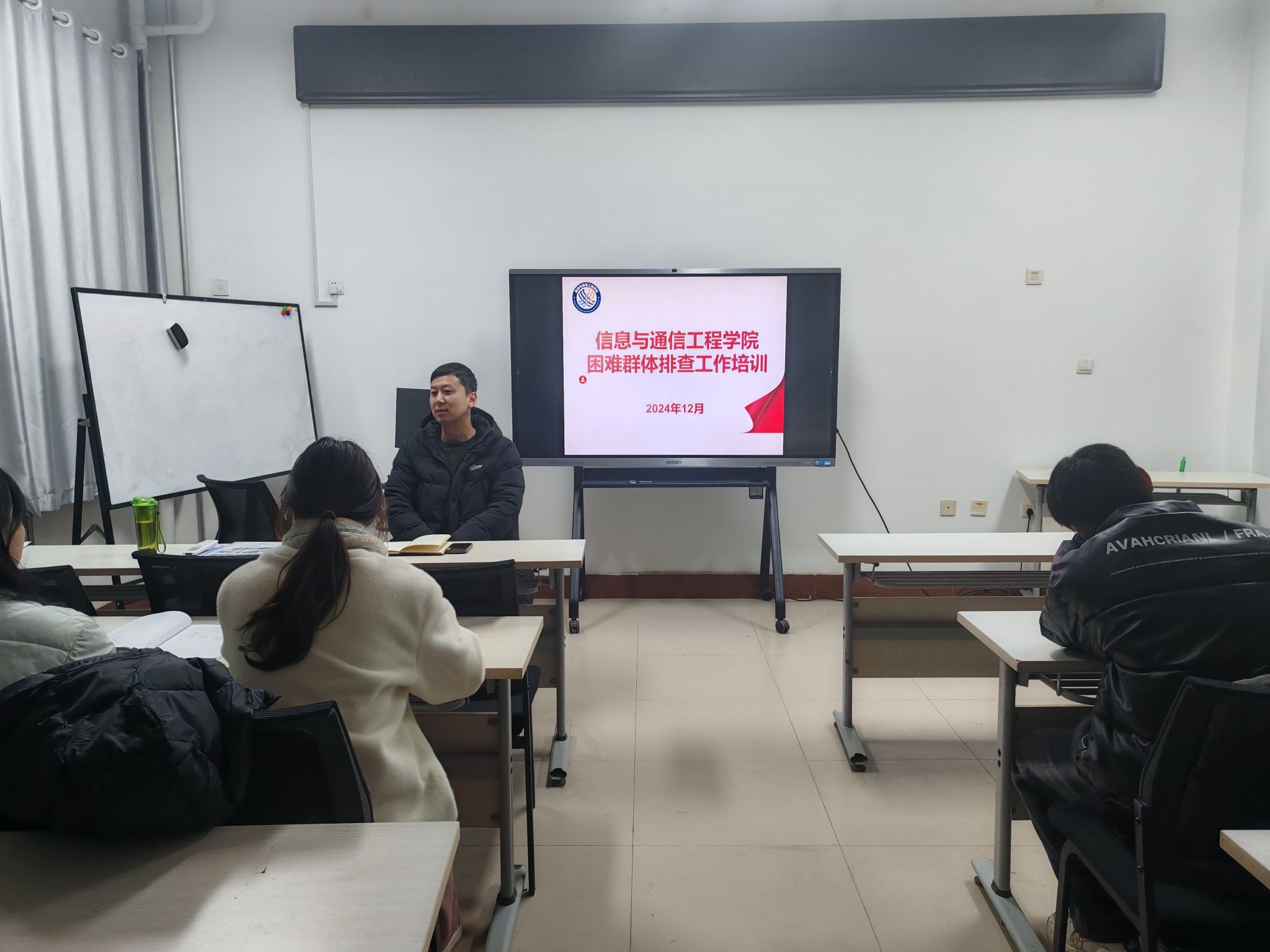 于12月23日,组织各年级学生骨干,开展困难群体排查工作培训。会议由学工办主任魏晓宇主持。