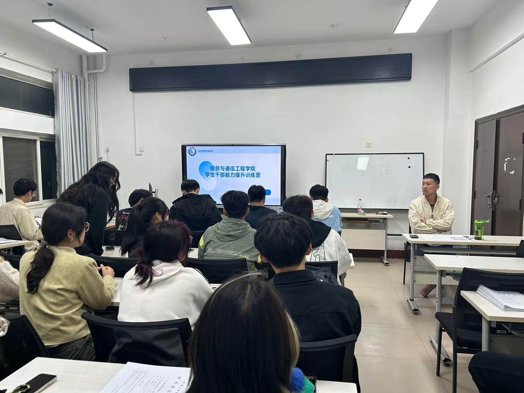 举办第一期学生干部能力提升训练营,各班级班委成员参加,辅导员魏晓宇主持会议。
