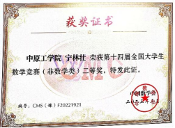 在学习和科研方面,宁林壮勤勉刻苦,成绩优异。他专业基础扎实,大一大二学年连续两年获得学业二等奖学金,大三学年平均学分绩88.72分,位列专业第四,获得国家励志奖学金。为了将所学知识与实际应用结合,他还积极参与各类学科竞赛,在河南省电子设计大赛中荣获三等奖,在全国大学生数学竞赛中斩获二等奖,这些荣誉见证了他在学术道路上的不懈努力与追求,这些经历丰富了他的专业知识,也锻炼了他的科研能力,也更加坚定了他在电子信息领域深耕细作的决心和信心。