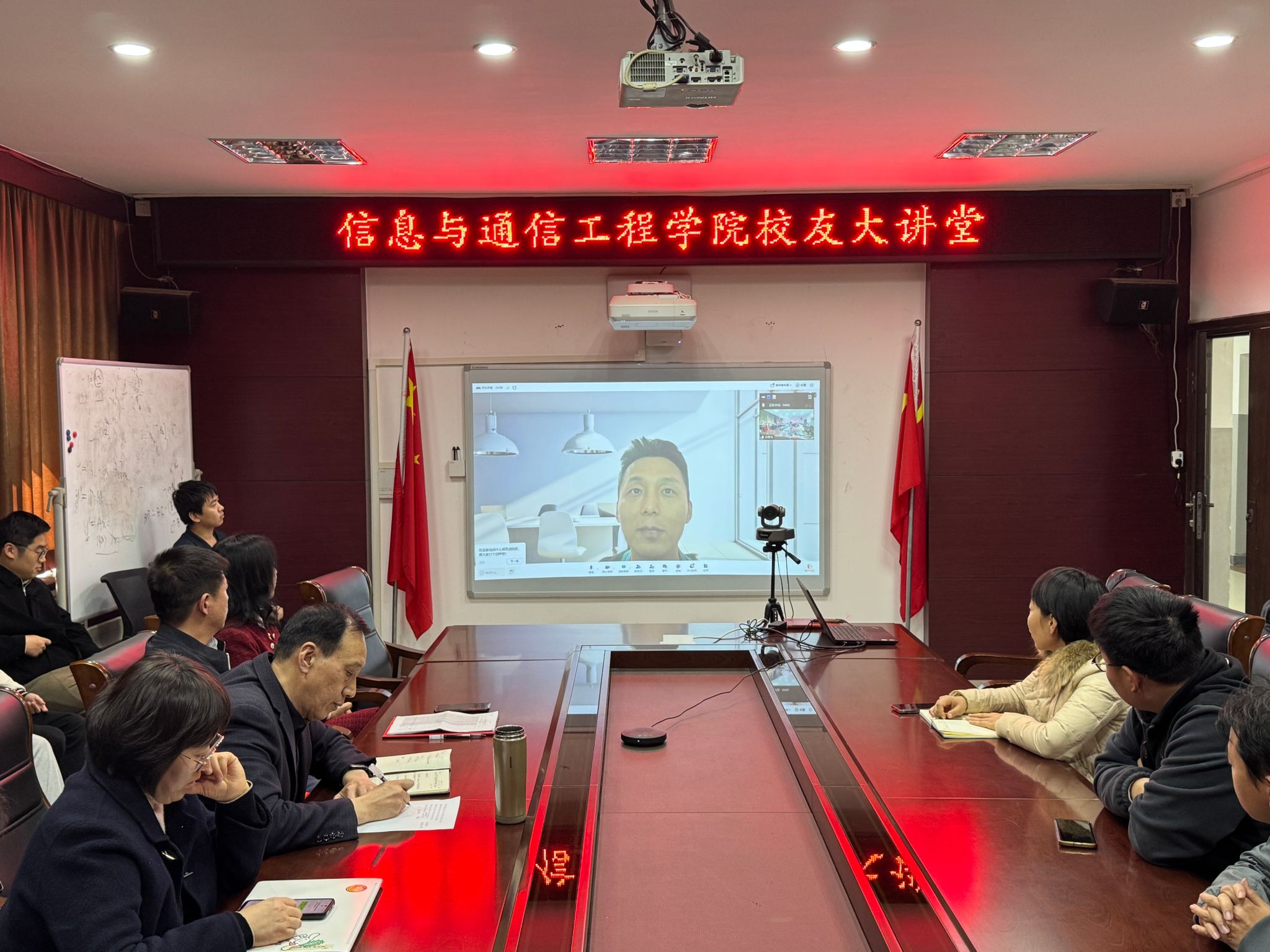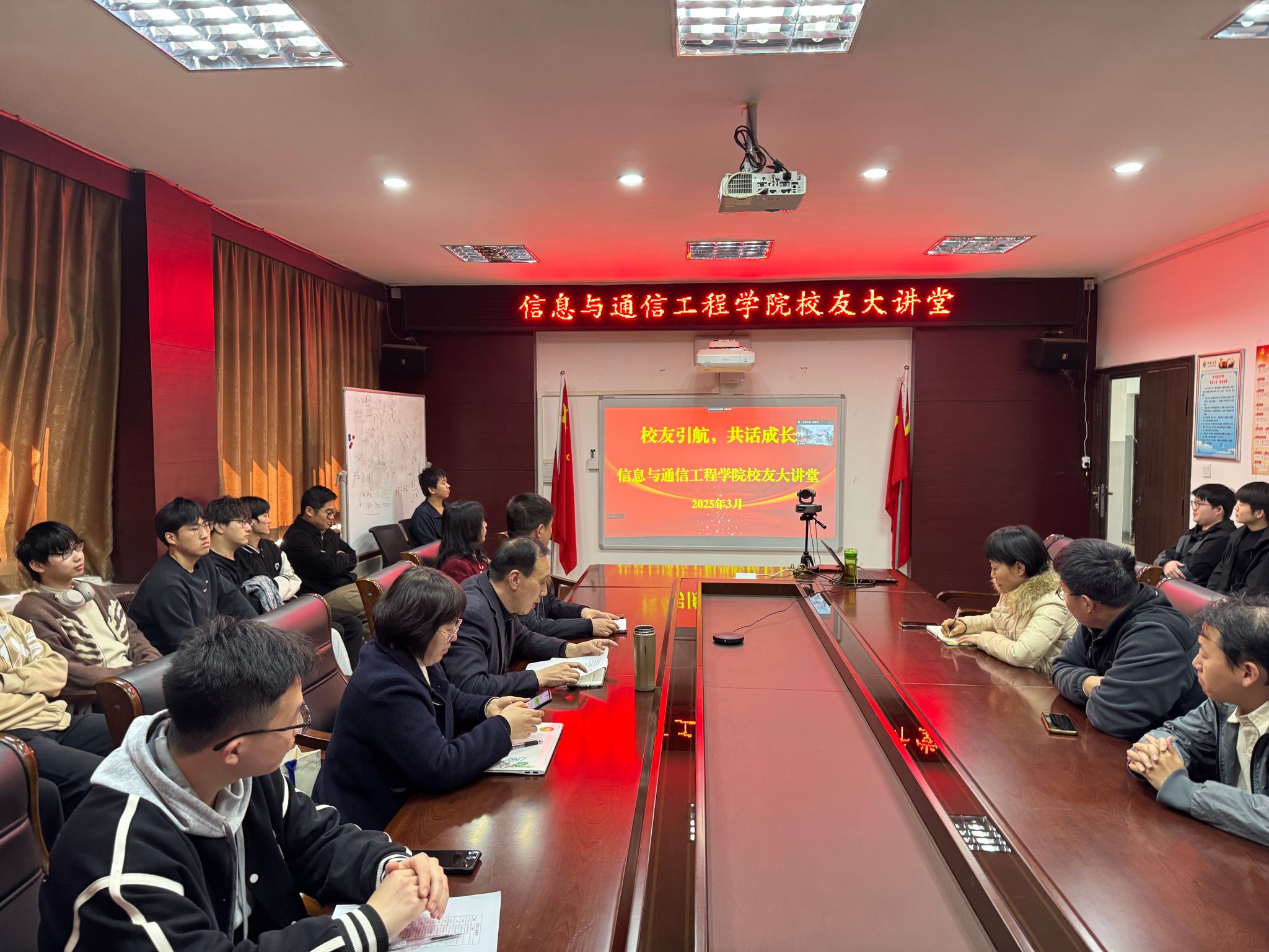 于3月19日在10号楼218会议室举办校友大讲堂活动,邀请2005届校友马腾通过线上出席,学院班子成员、各年级辅导员和学生代表参与本次活动。